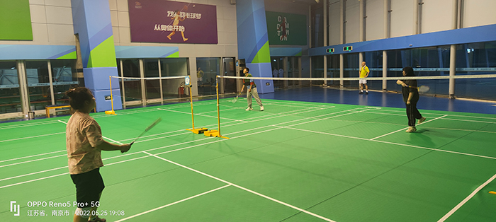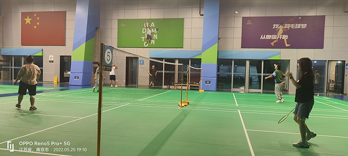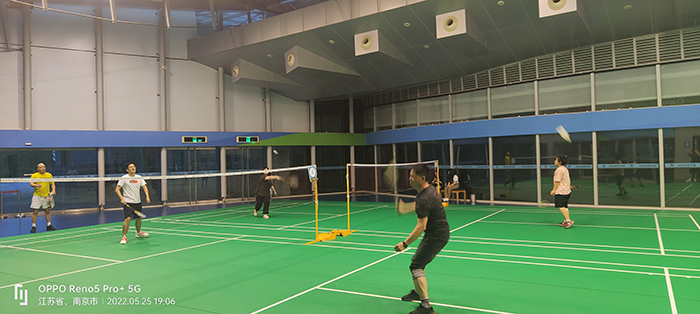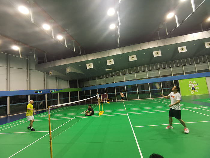 同时促进同事们对羽毛球技术的了解,我们公司包场了一个羽毛球场地。