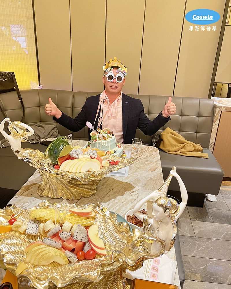随着熟悉的旋律,大家唱着生日歌,感受着大家庭的温暖,严总许下生日愿望。
