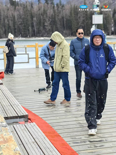 驱车3小时抵达喀纳斯,湖水如翡翠般镶嵌在雪山与森林之间。我们徒步至观鱼台,俯瞰湖光山色,无人机航拍记录下全员振臂欢呼的瞬间。