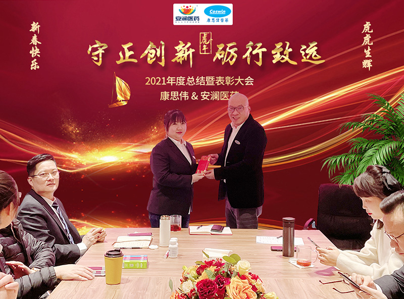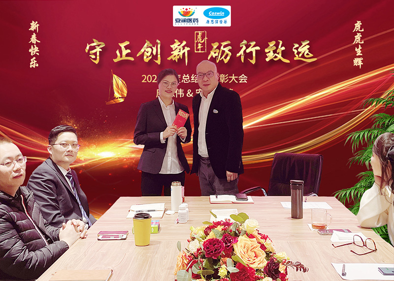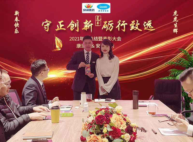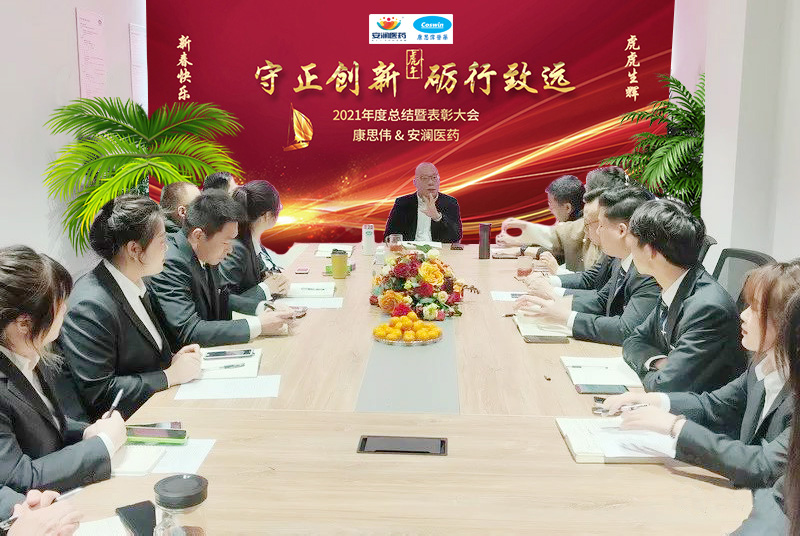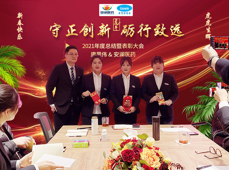 最后,董事长兼总经理沙总做了重要讲话。首先他解释了本次年会的主题“守正创新,砺行致远”的具体含义;接着介绍了2022年公司计划推出的大健康方向的几个产品及销售模式,并对新的一年这一全新的领域提出了设想和期盼。最后,他对每位员工进行了点评,当然更多的是鼓励和关爱。沙总还对全体员工提出了四点要求,希望大家热爱学习,积极乐观,统筹人生,敢于担当!